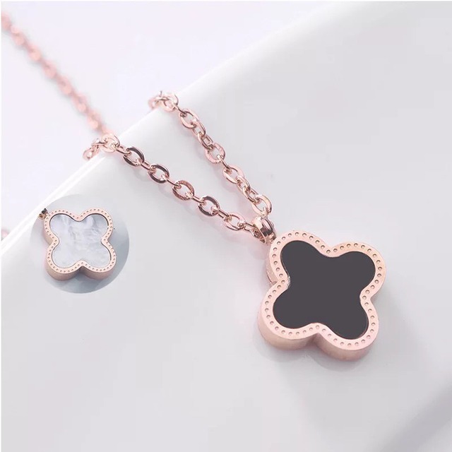 【新品/送料無料】K18/ネックレス/クローバー/レディース/おしゃれ/かわいい/シンプル/ブラック/ホワイト/ピンクゴールド/チタン/秋