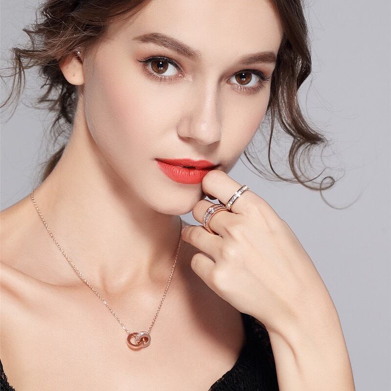 【新品/送料無料】K18/ネックレス/Wリング/レディース/おしゃれ/かわいい/シンプル/ピンクゴールド/チタン/秋